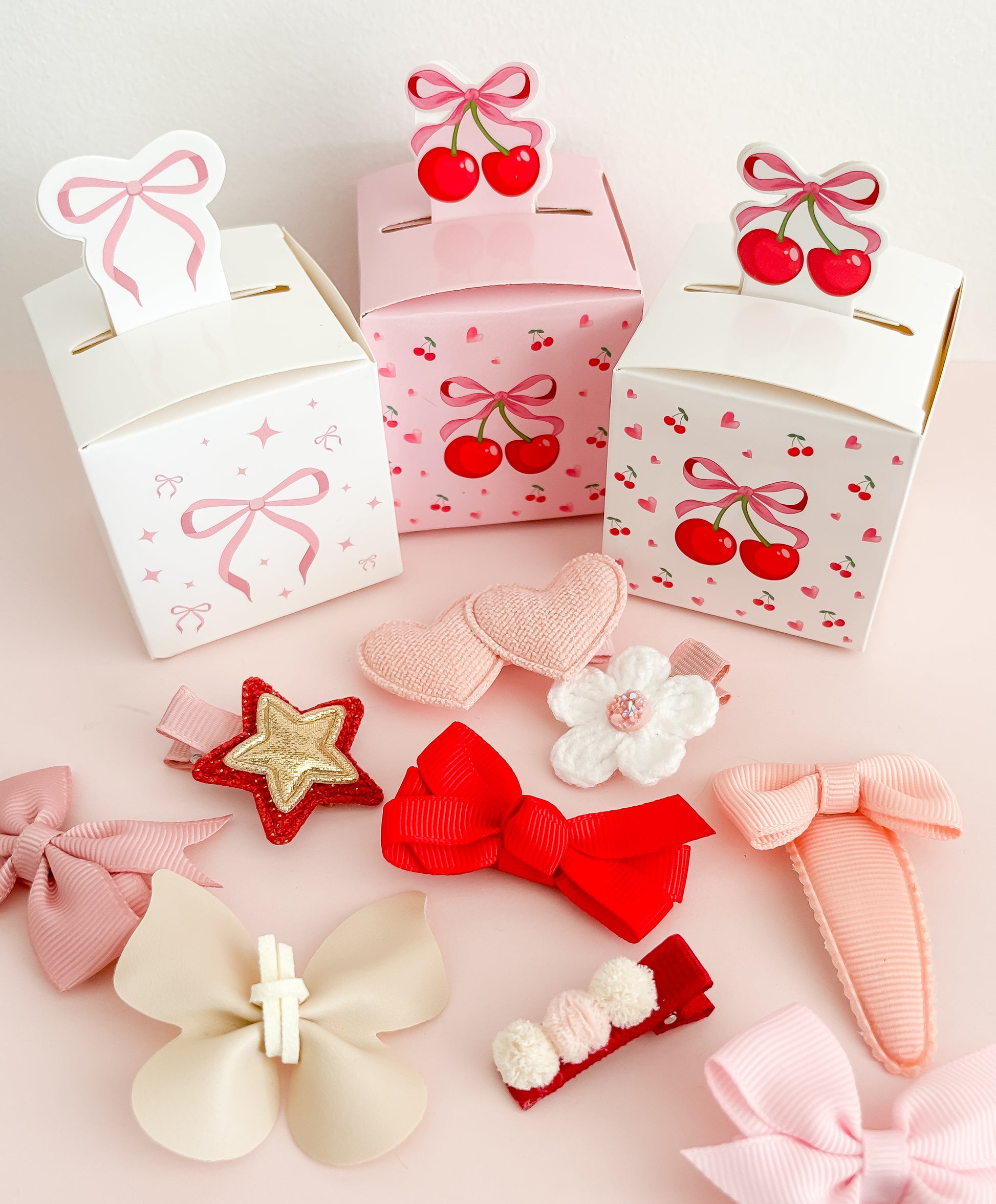 Perfectly packaged in your choice of a sweet Cherry print or classic Bow print gift box, these clips are ready for gifting.