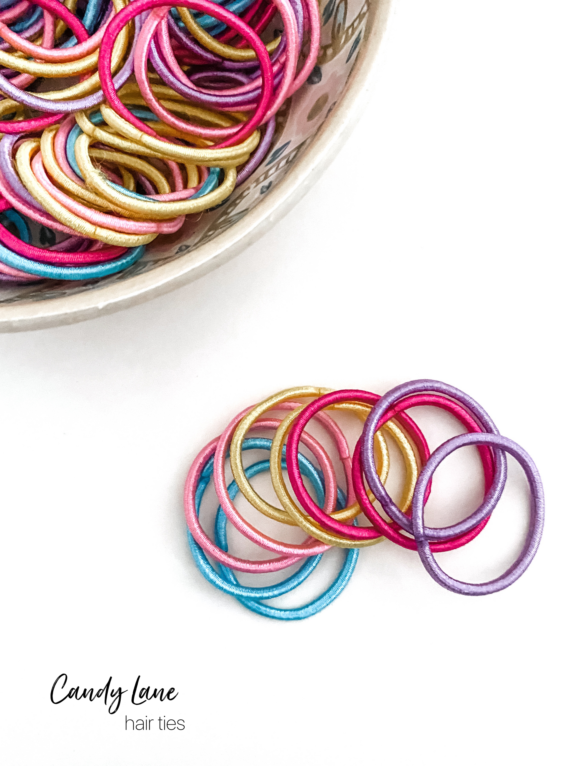 Gentle hair ties & metal free, the Candy ties are perfect for baby, toddler & girls pigtails & ponytails - pop a piece of ribbon or a bow over them to dress up or let them pop on their own!