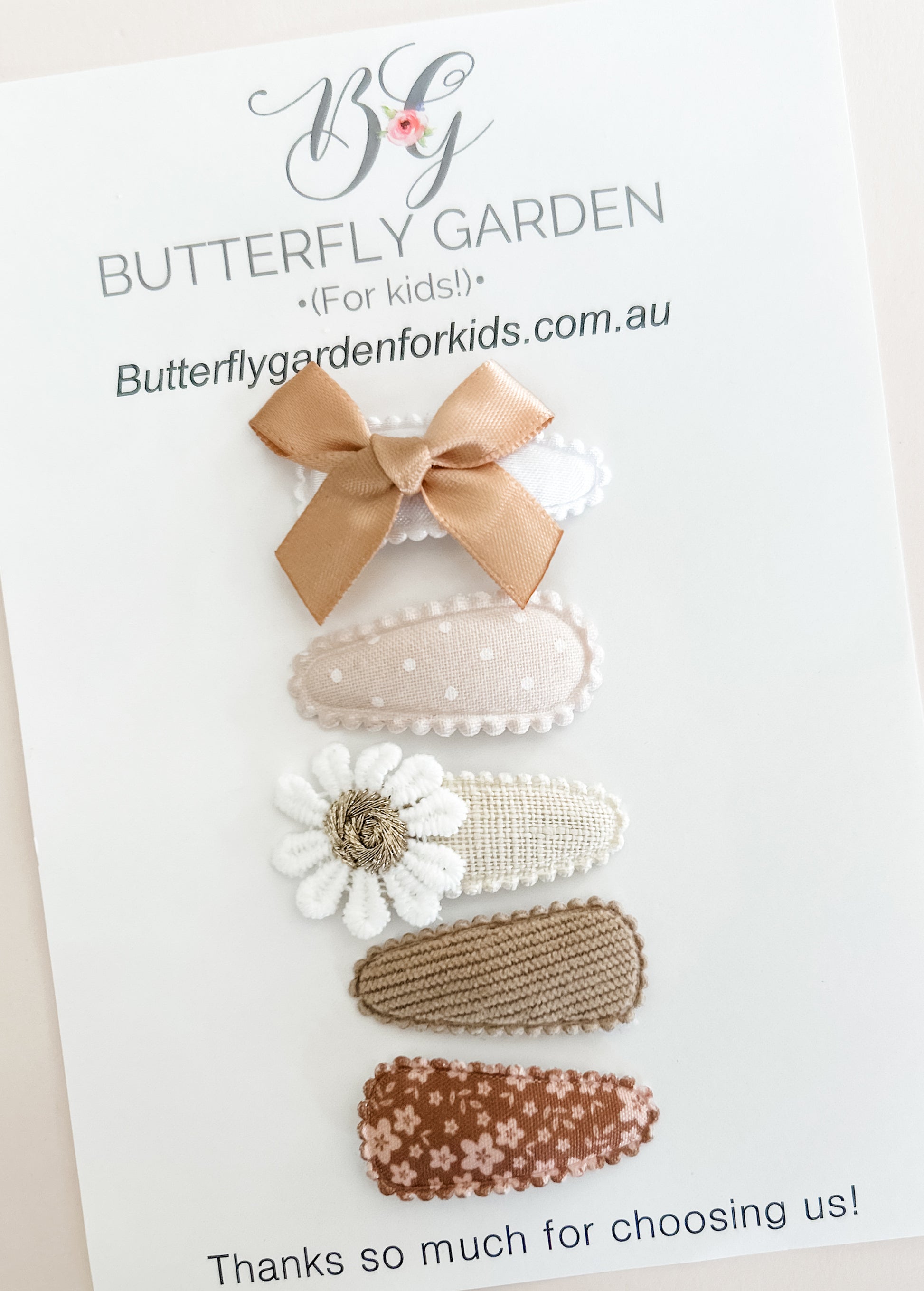 A beautiful set of mixed baby nonslip clips in a soft neutral theme- perfect as a newborn gift set, first birthday present or just a great way to sample some of our favourite clips!