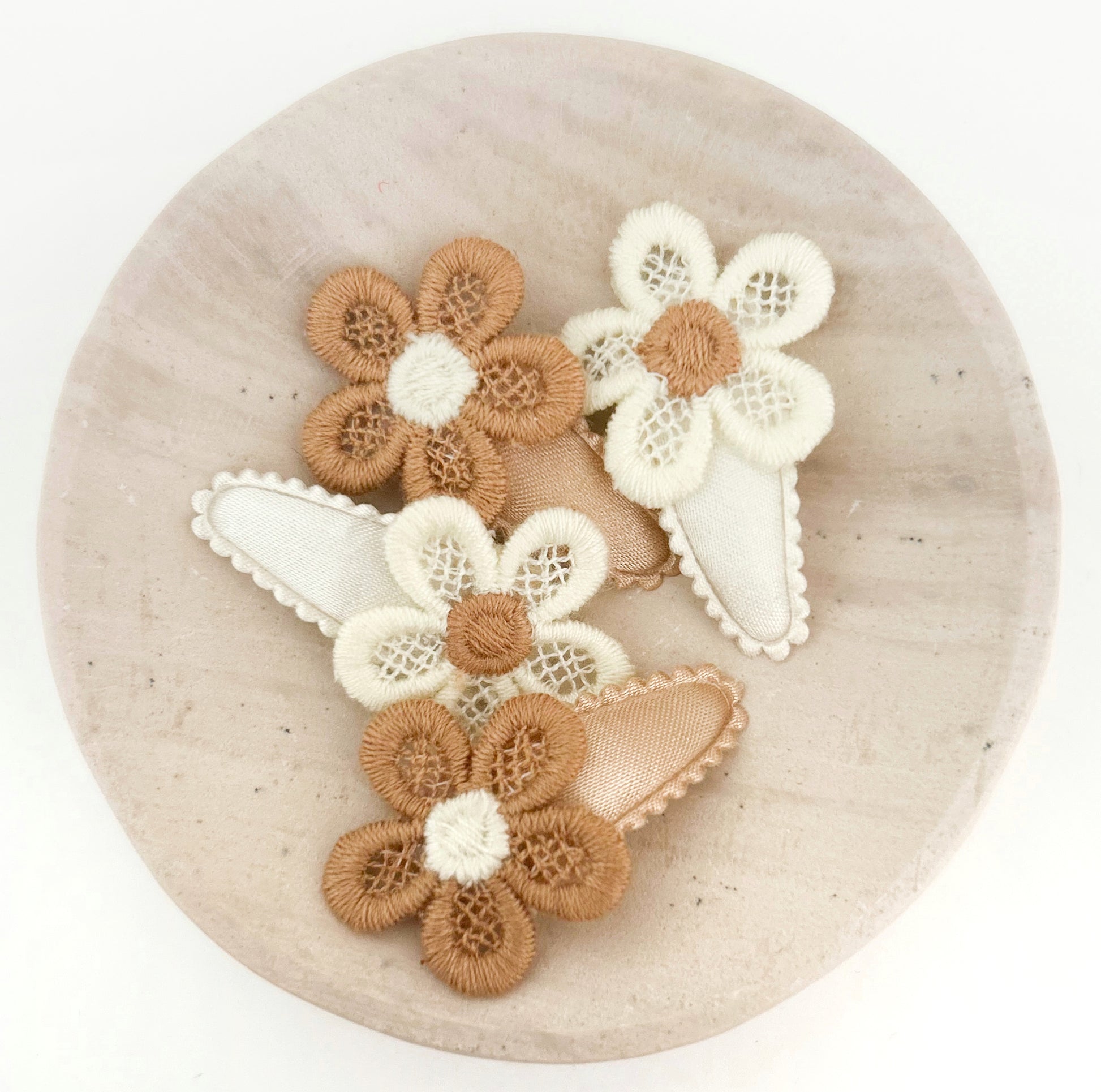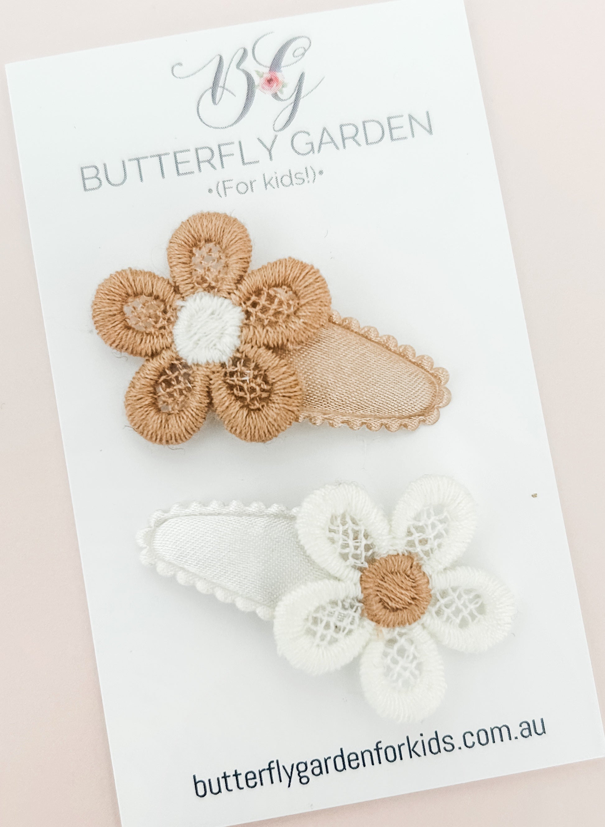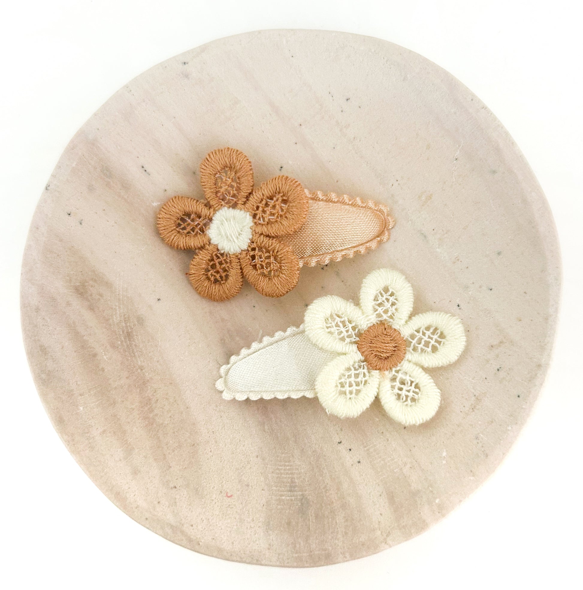 2 x sweet baby nonslip clips topped with delicate neutral blooms