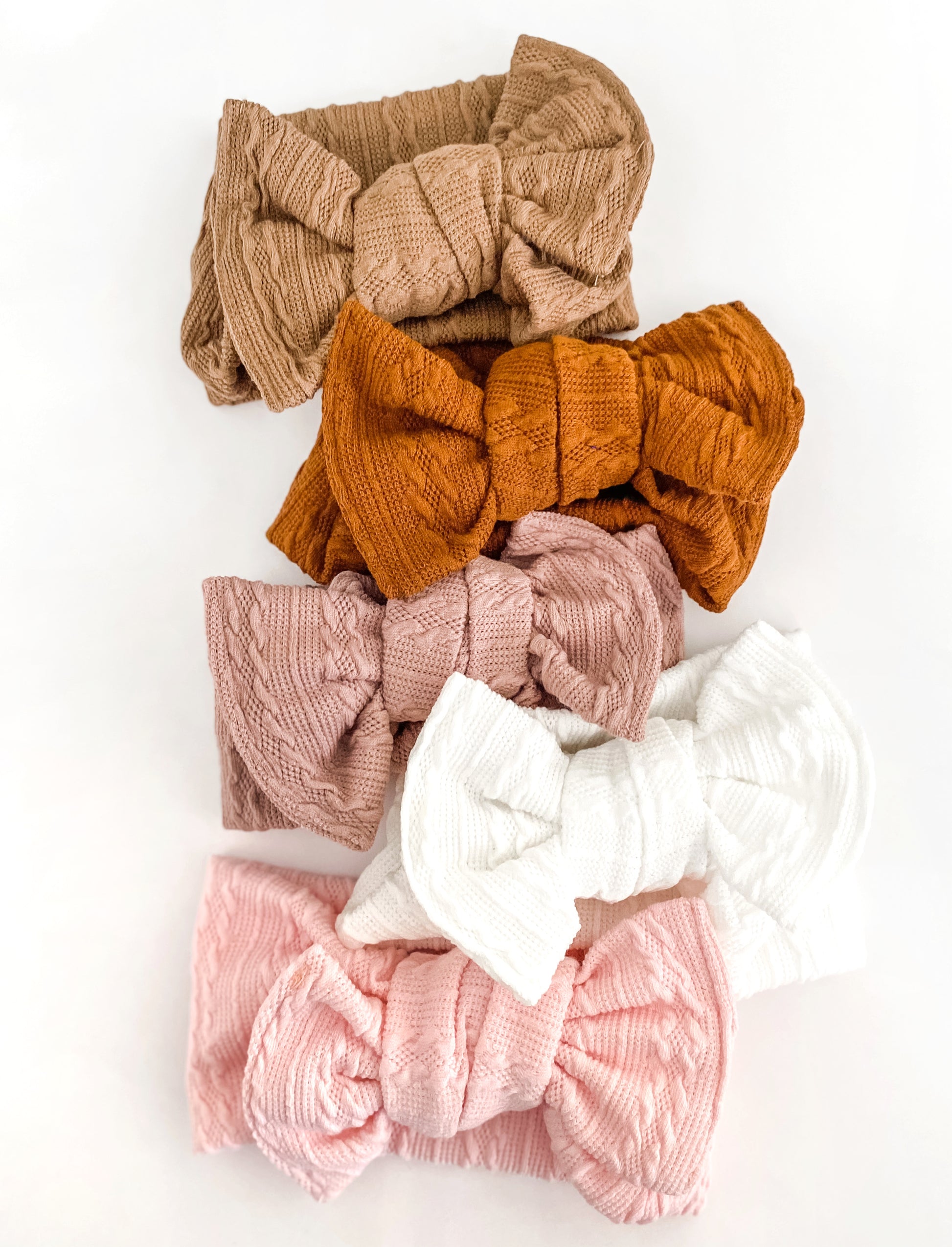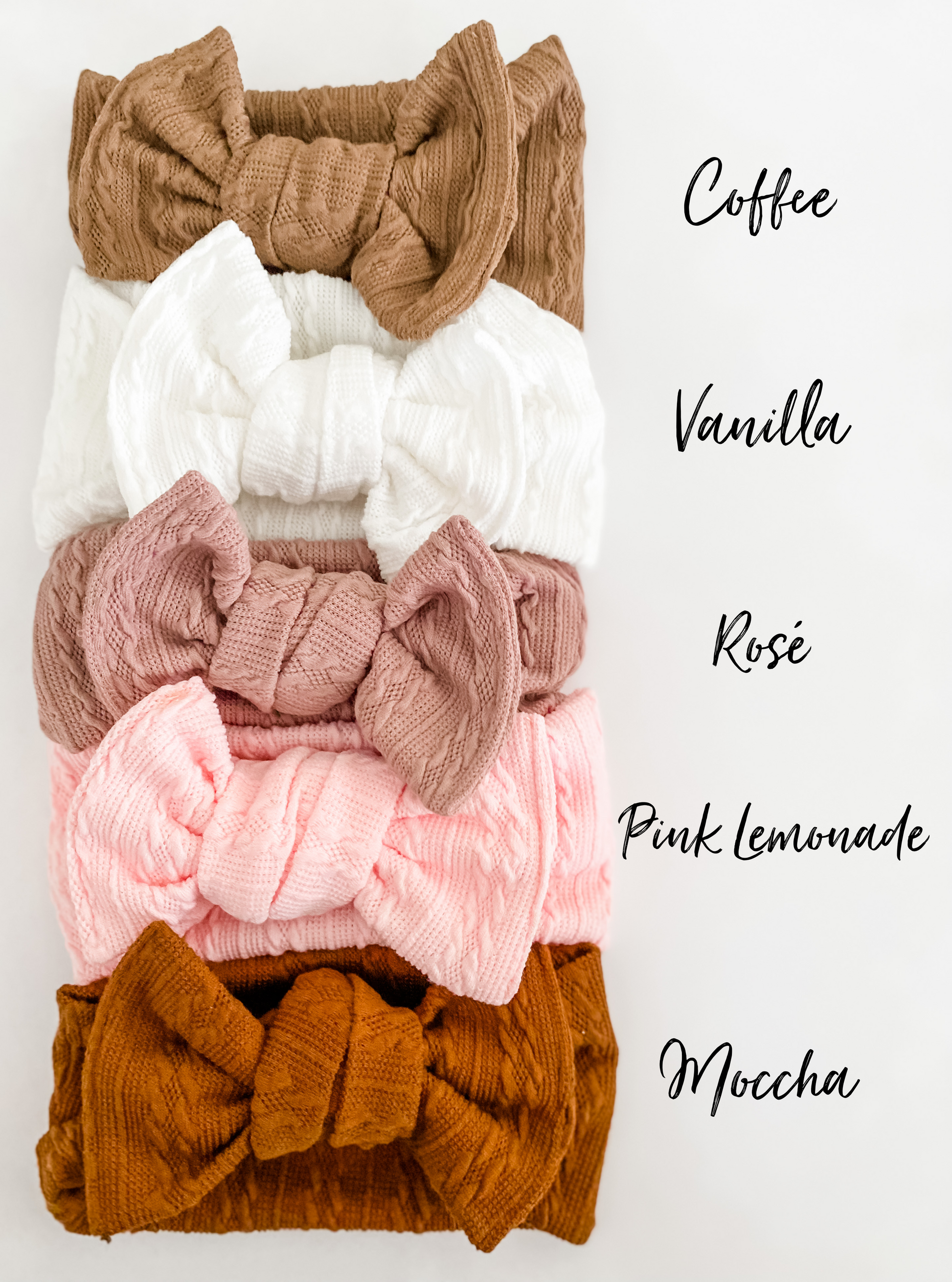 One of the most stunning headbands we've ever had- A soft colour palette perfectly compliments the fabric choice, Josie has a gorgeous wide band with braid detail & a hand-tied bow in a new shape.