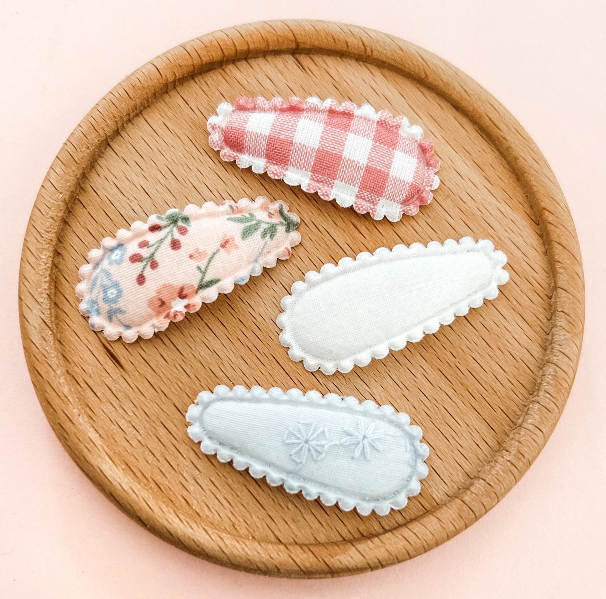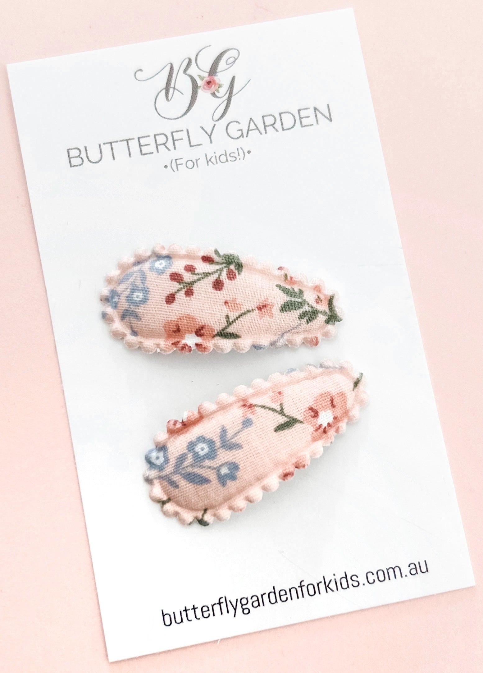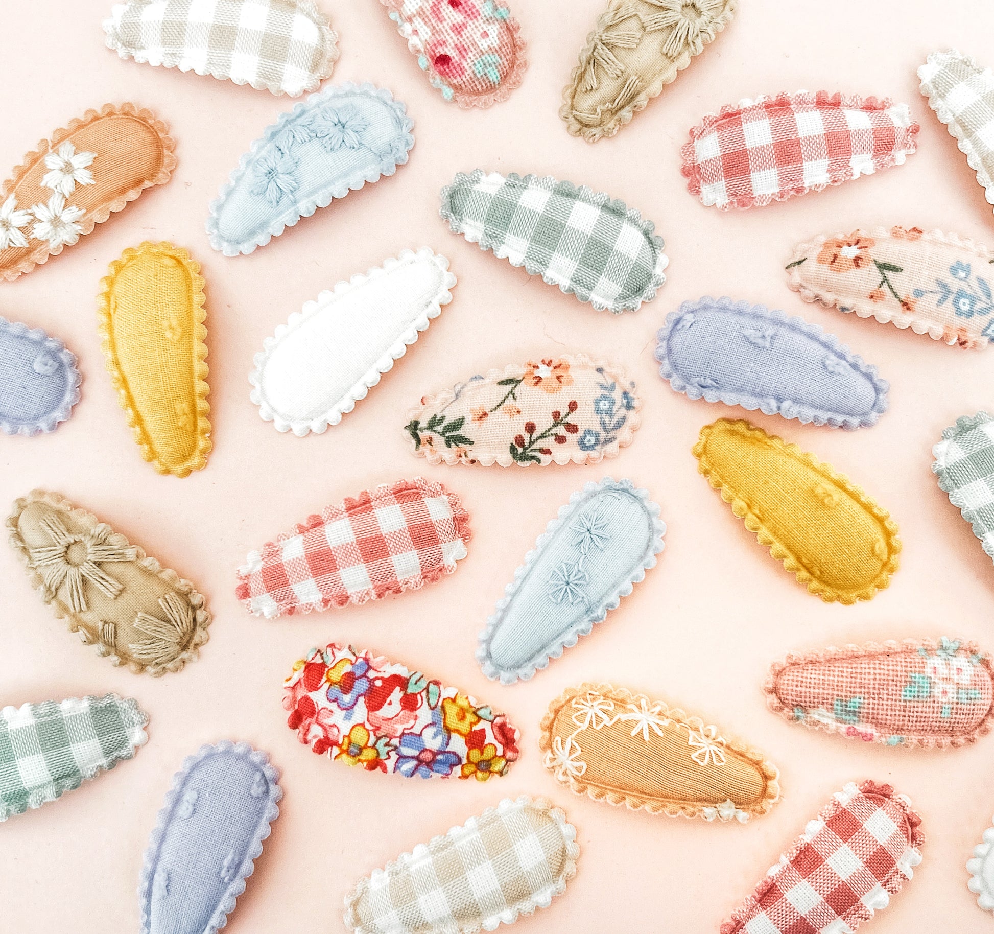 2 x gorgeous baby nonslip hair clips from our new Mini Cotton Snaps collection - mini versions of our popular larger Fabric Snap Clips, in limited edition prints & neutrals.