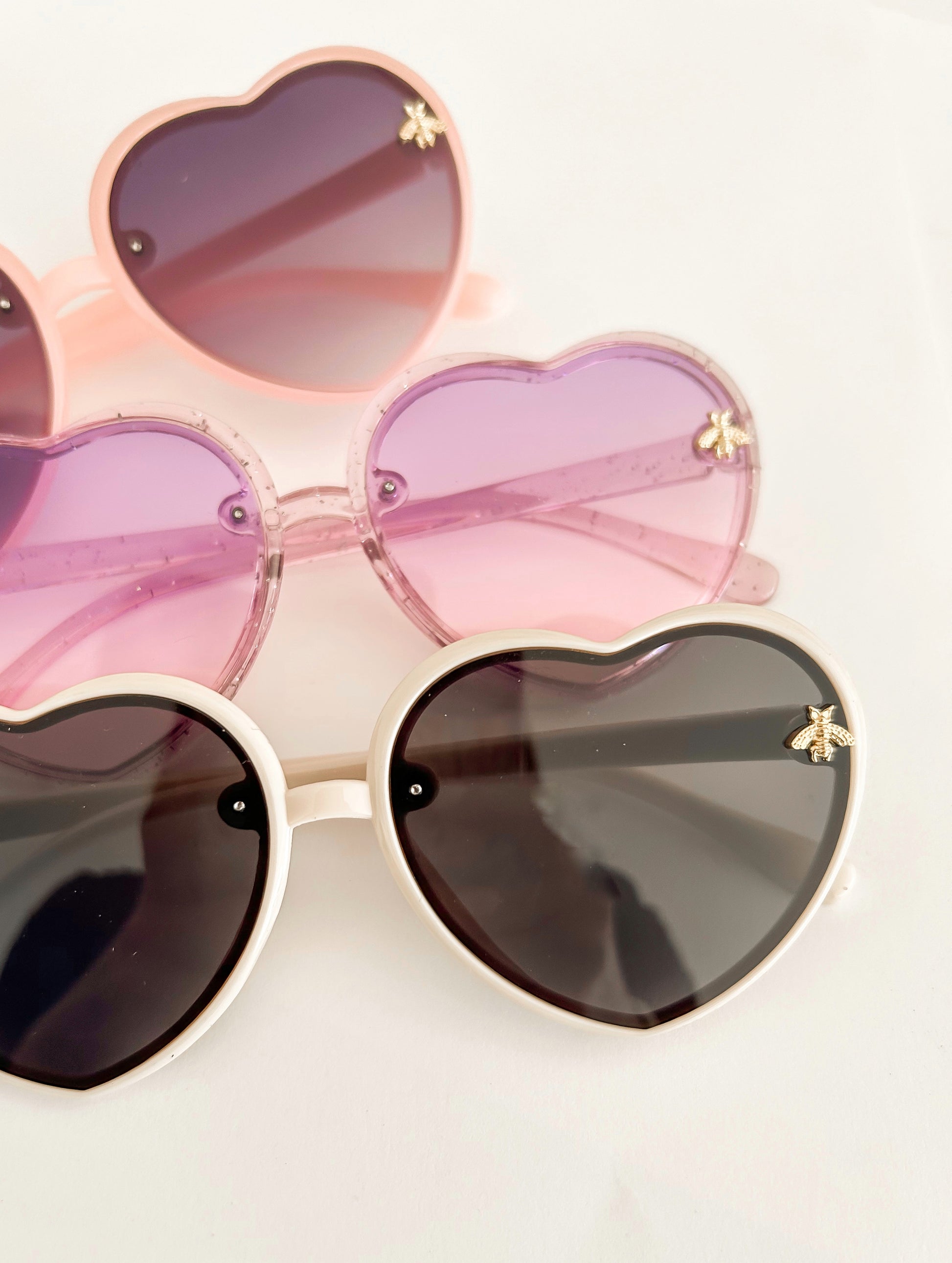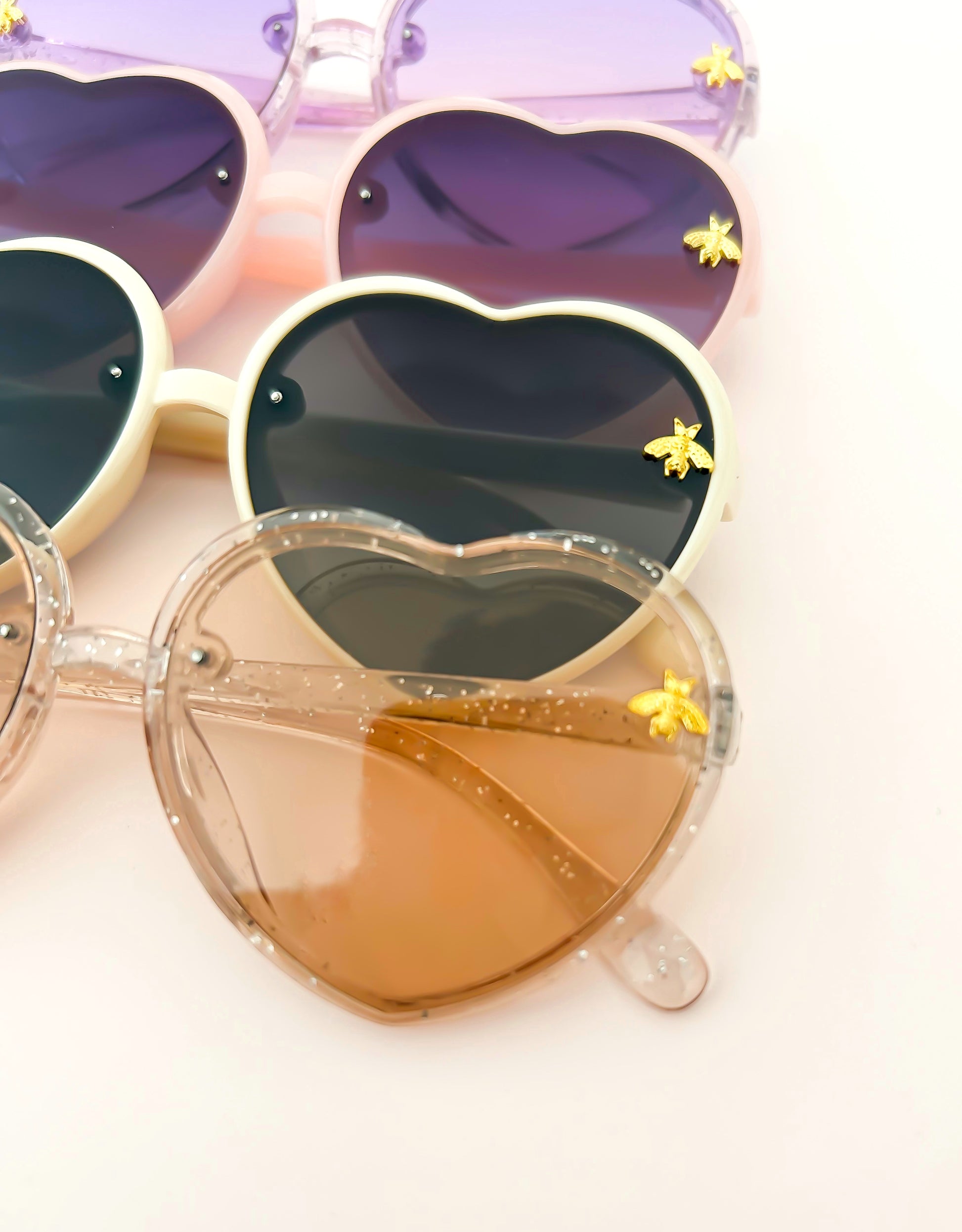 Because there's a little Queen Bee in all of us! Beautiful heart shaped Sunnies, with fine gold detail.