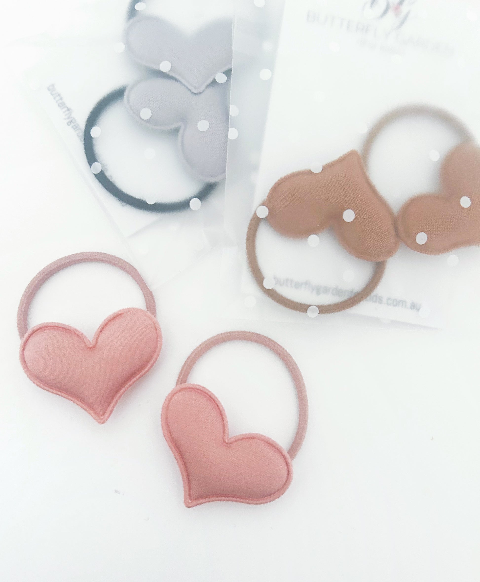 A Pair of beautiful hearts made on medium no-snag hair ties - perfect for ponytails & pigtails!