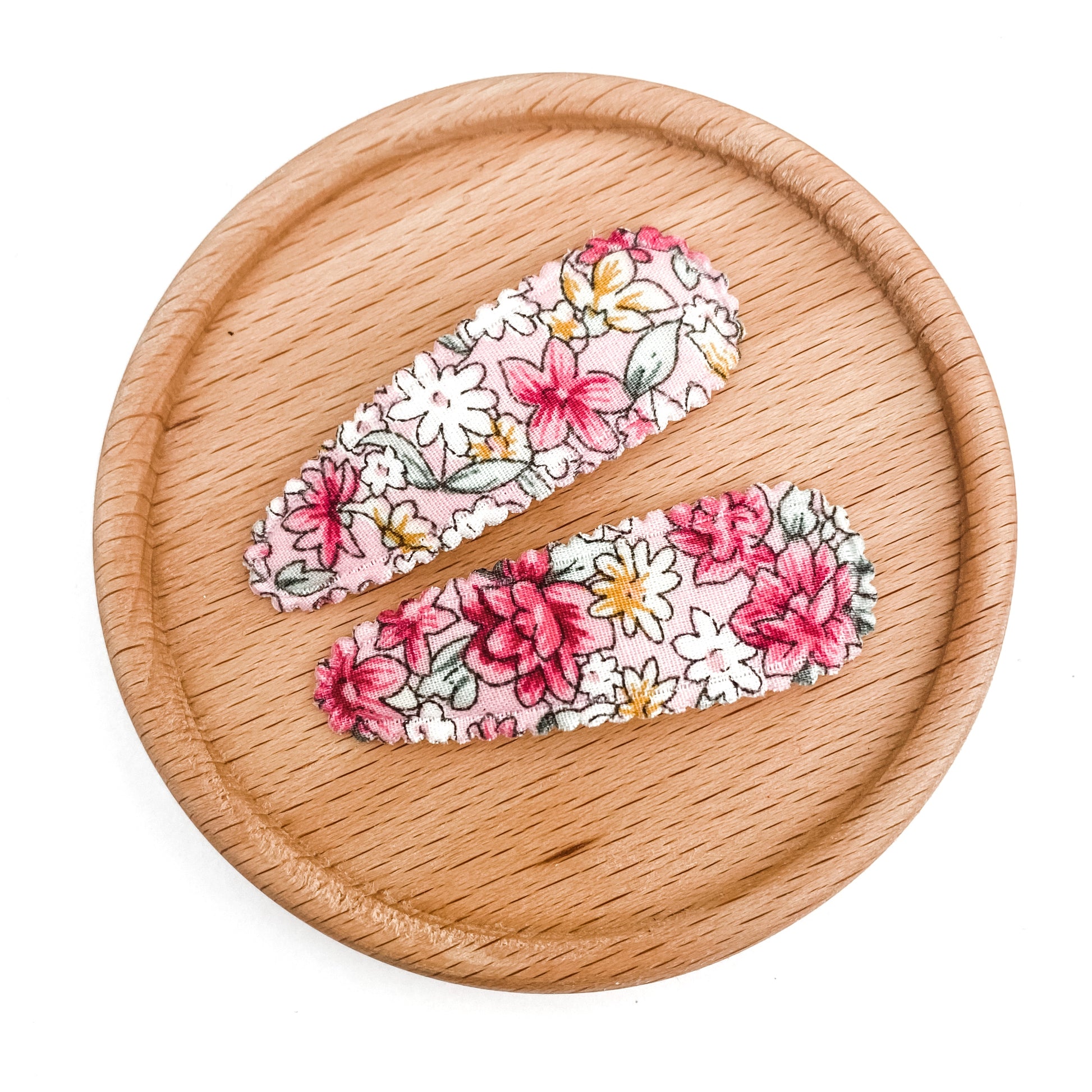 2 x beautiful fabric snap hair clips, perfect for taming wispy bits, fringes & soft curls- or just for a little pop of colour!