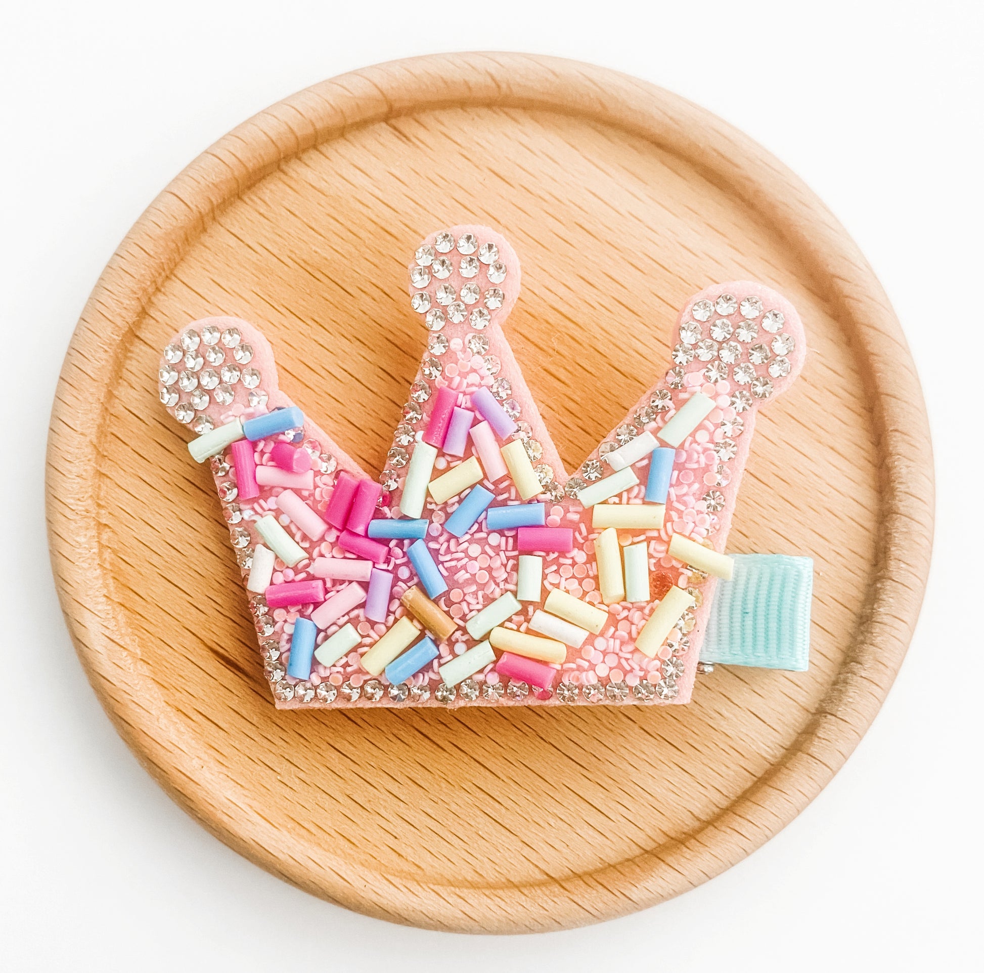 Such fun! A detailed sprinkles & glitter tiara made on a girls nonslip hair clip perfect for parties, birthdays or just a pop of colour everyday.