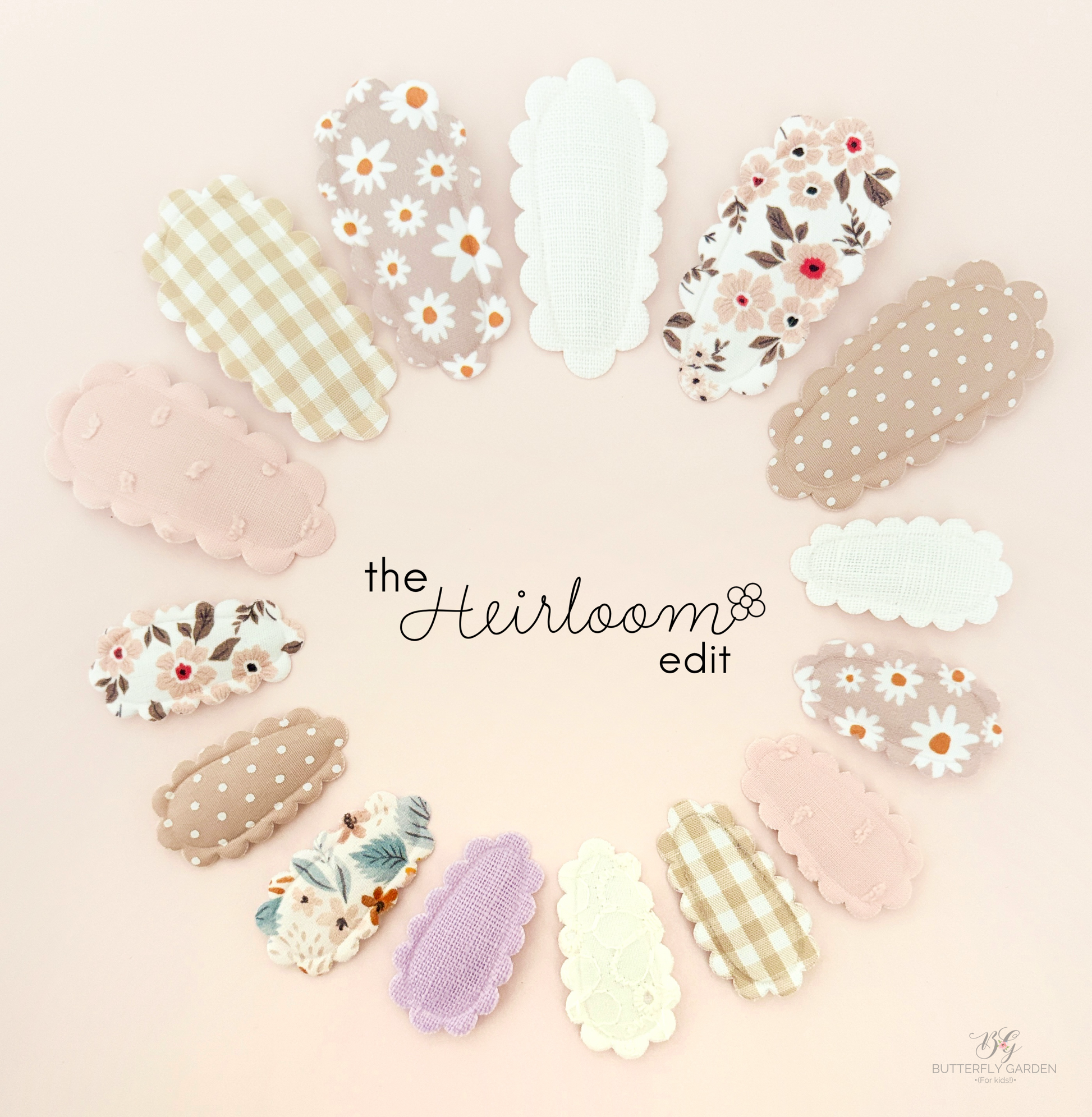 The Heirloom Edit is a small nostalgic collection of baby non-slip clips, designed with a wider silhouette and beautifully pronounced scalloped edges for an extra touch of old-world luxury.